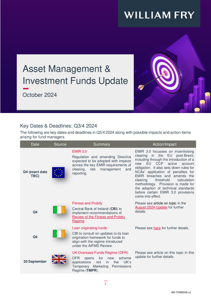 Welcome to the October 2024 edition of our Asset Management & Investment Funds Update.